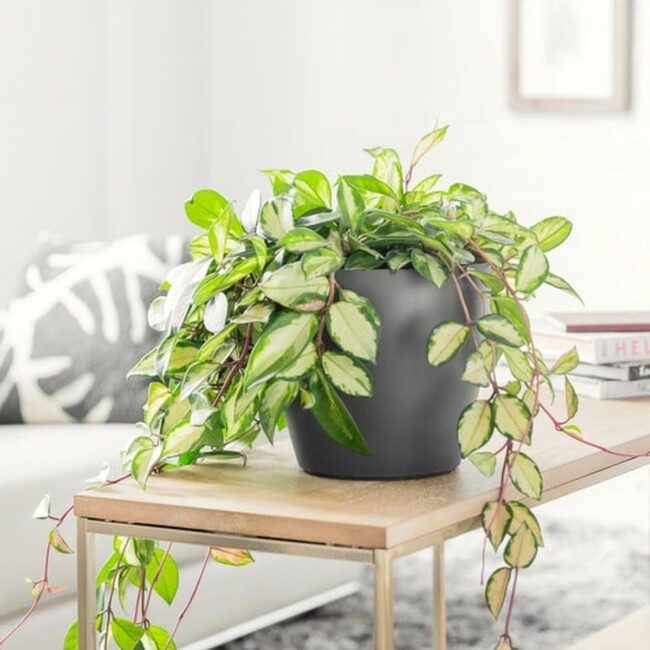 Gorgeous waxy foliage cascades beautifully from hanging baskets or shelves, providing aesthetic appeal and air-purifying benefits.