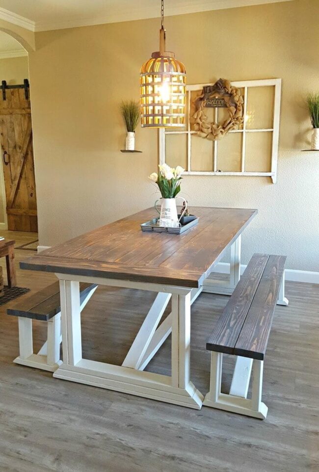 Farmhouse decor ideas for dinettes maximize small spaces with charm. A farmhouse table paired with a bench that slides underneath offers additional seating when needed.