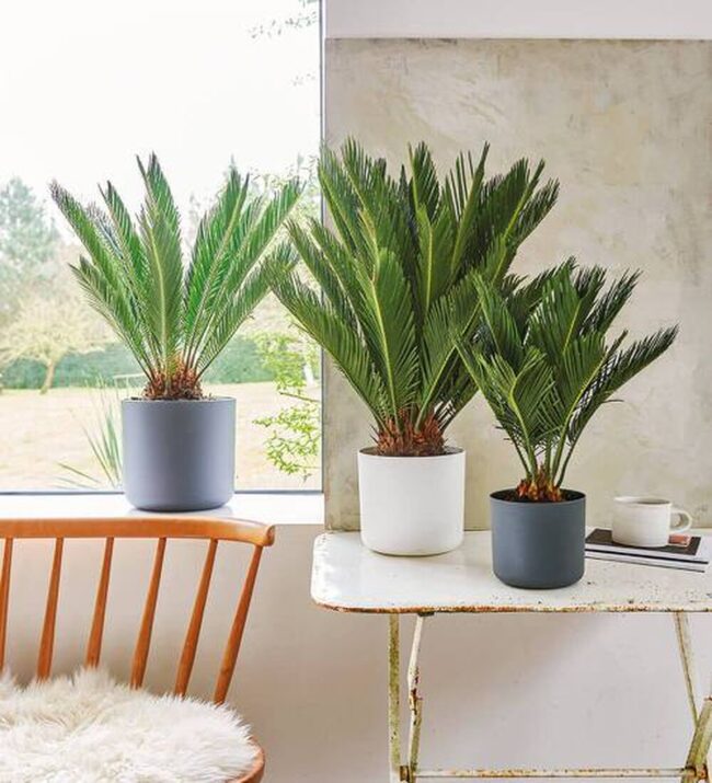 Compact palm-like plants grow slowly, making them perfect for indoor spaces with strong southern light exposure.