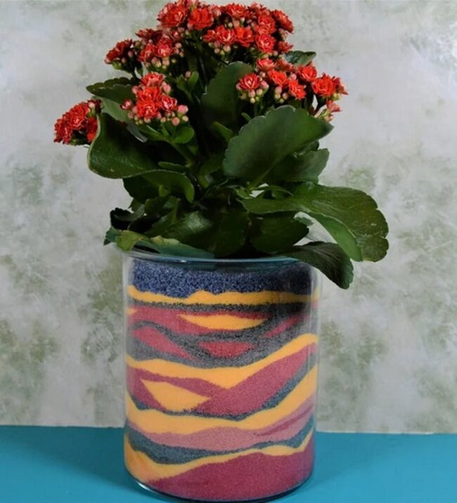 Strategic sand layering transforms ordinary pots into personalized gardening masterpieces.