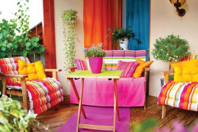 Colorful balcony with lush plants are outdoor spaces designed to maximize small areas with botanical brilliance.