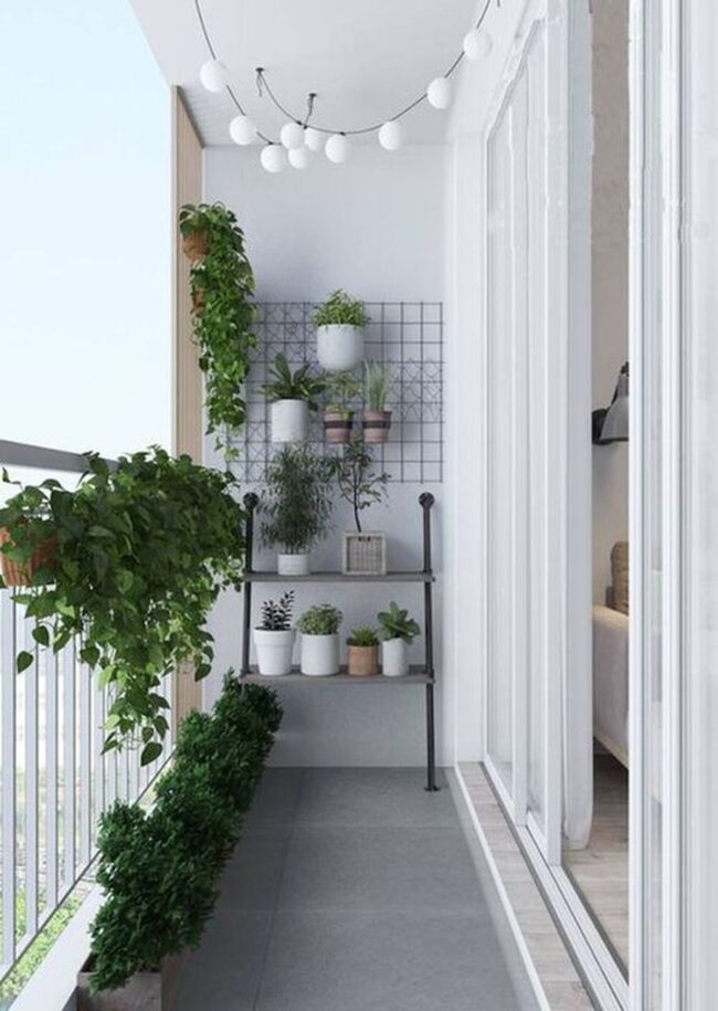 Small potted flowers and trailing vines dramatically transform ordinary balconies into enchanting green sanctuaries.