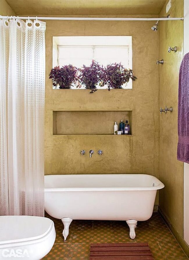 Inch plants dazzle bathroom environments with their stunning purple-and-green striped leaves that cascade elegantly from hanging planters or shelves.