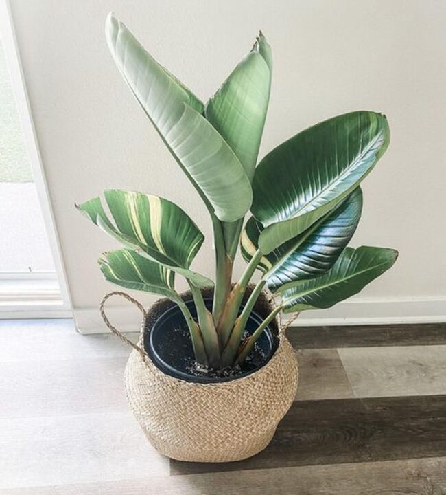 Variegated bird of paradise electrifies indoor spaces with dramatic white-and-green striped leaves that curve like elegant sculptures.