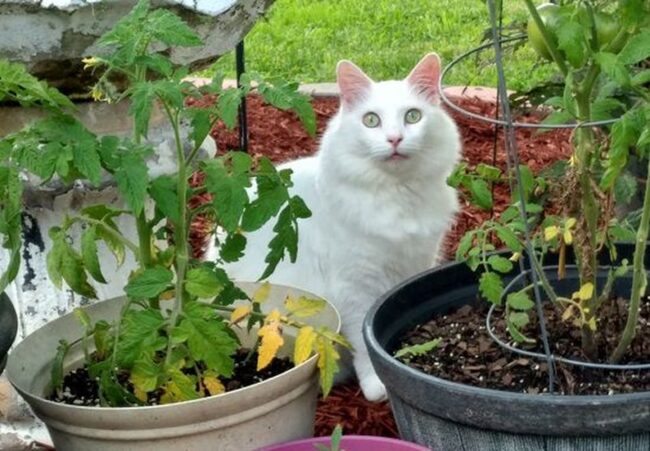 Solanine and tomatine chemicals in tomato plants can trigger gastrointestinal upset, weakness, and stomach pain in cats.