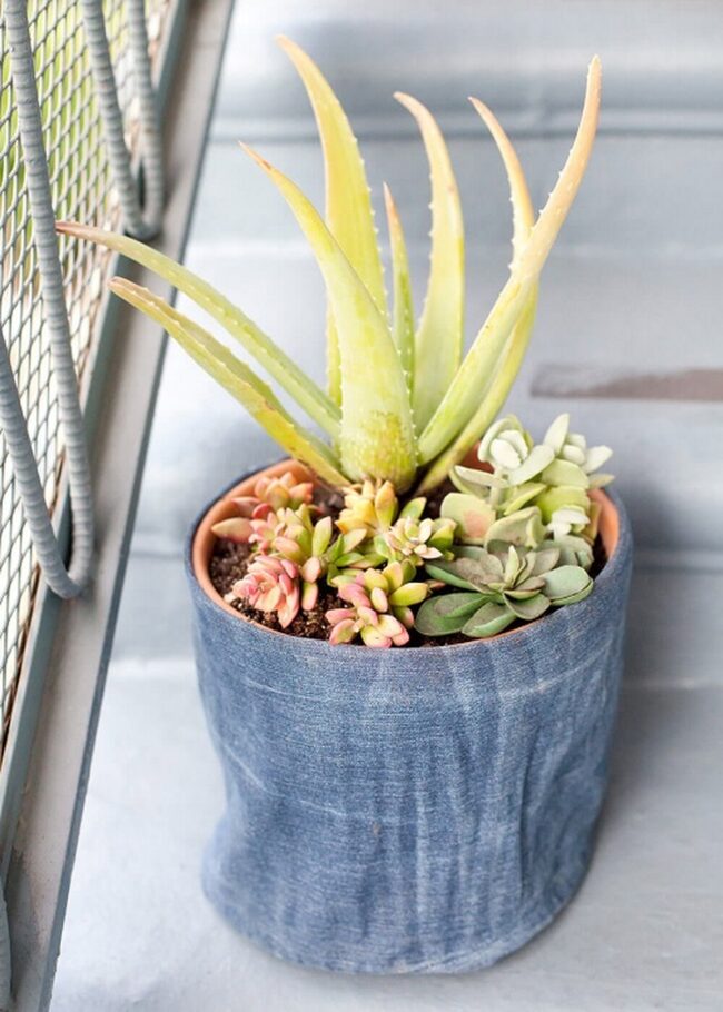 Denim's durability makes these pots perfect for various plants, from succulents to herbs.