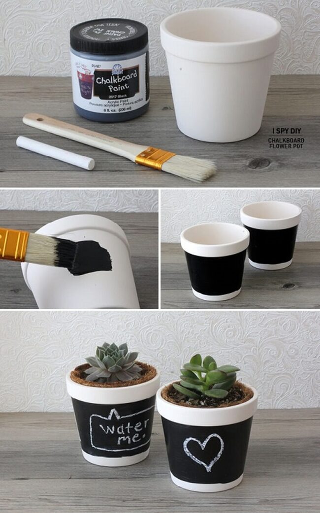 Chalkboard paint works wonderfully on terracotta, glass, and metal surfaces with minimal preparation.