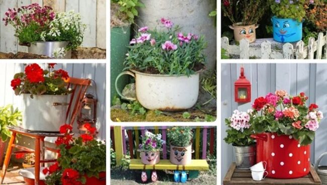 Unique pots spark garden magic by repurposing everyday objects into charming plant homes.