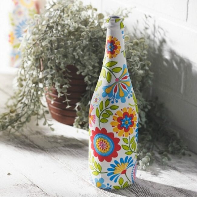 Fabric wrapped tightly around ceramic or plastic containers adds texture and unexpected visual interest.