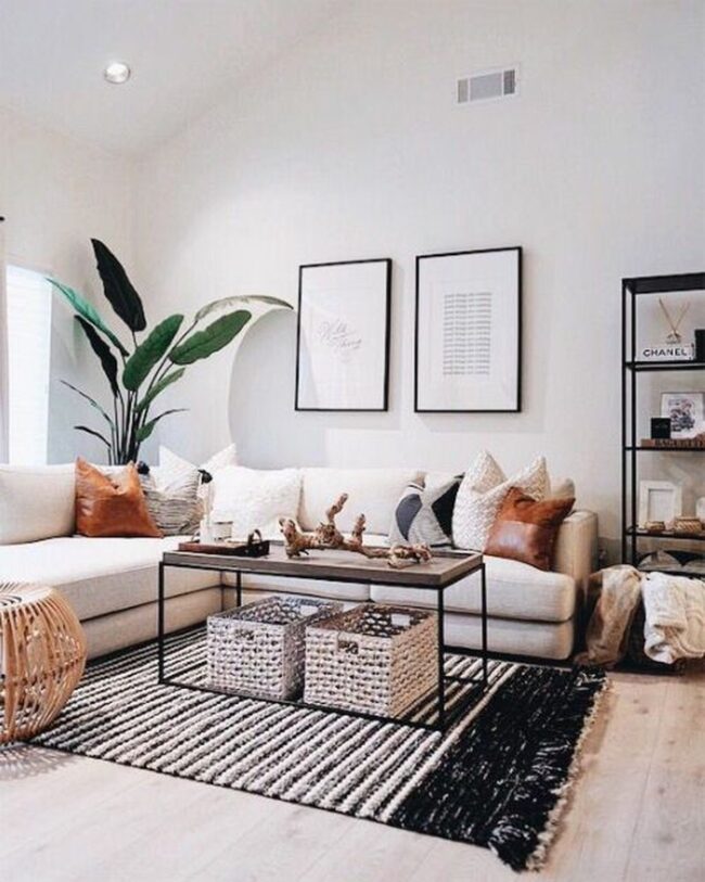 Strategically placed greenery softens hard edges and adds natural depth to small rooms.