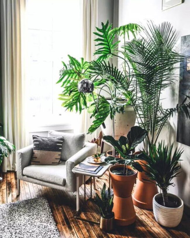 Green corner plants bring lush tranquility to compact spaces without overwhelming limited square footage.