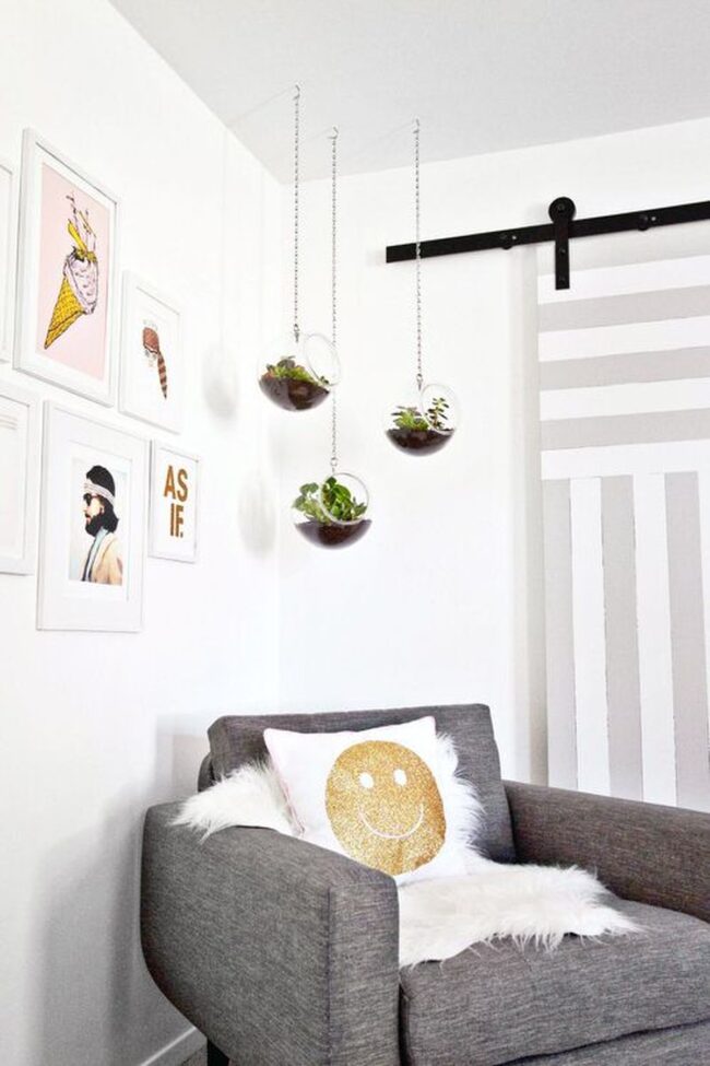 Hanging glass terrariums are magical miniature gardens perfect for small living spaces.