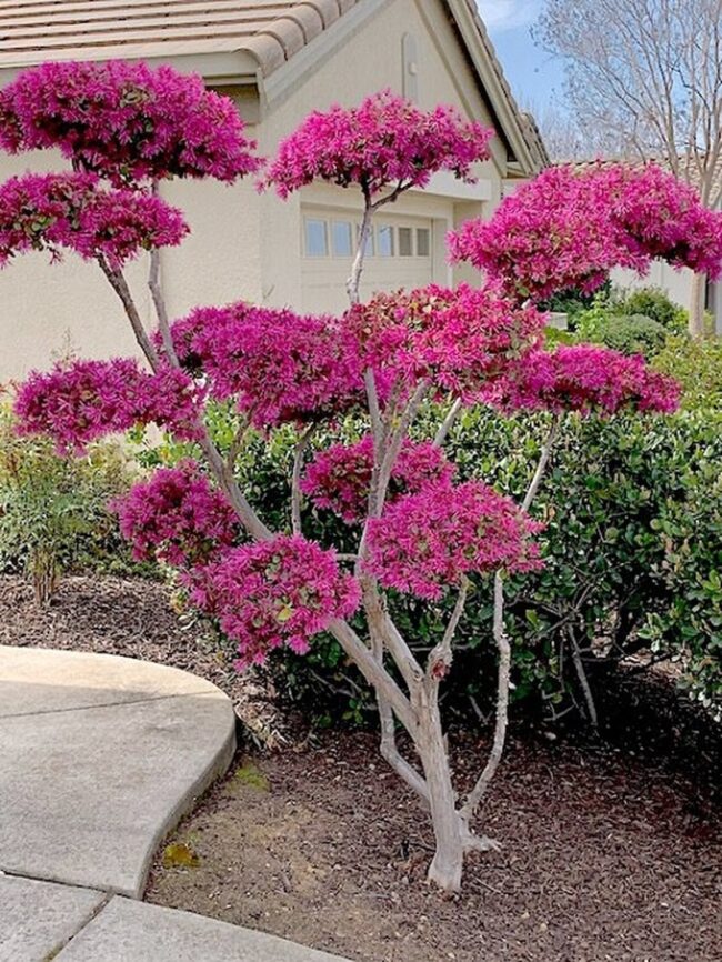 Mature trees reach modest heights between 20 to 40 feet, fitting comfortably in many garden designs.