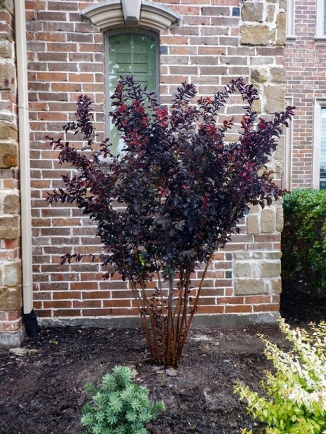 Dark burgundy leaves emerge in spring and maintain their rich tone through summer and fall.