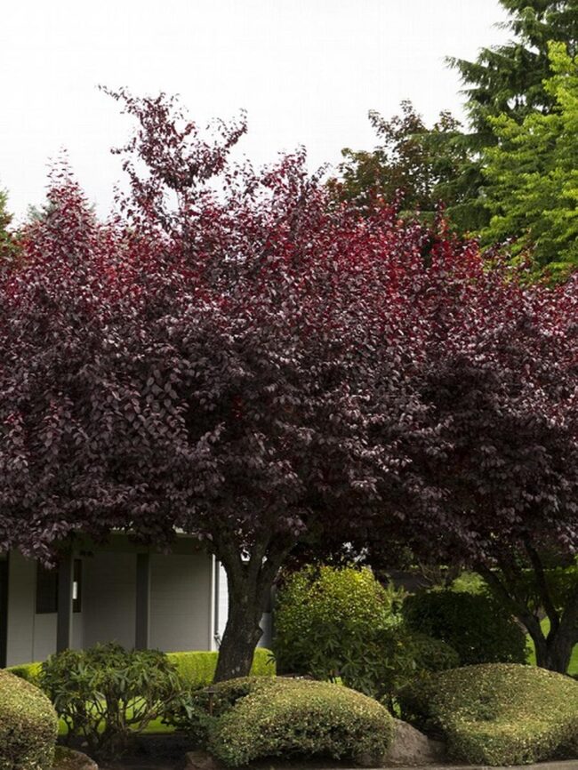 Blireiana plum trees enchant gardeners with mesmerizing purple foliage that shifts to fiery crimson and orange during autumn.