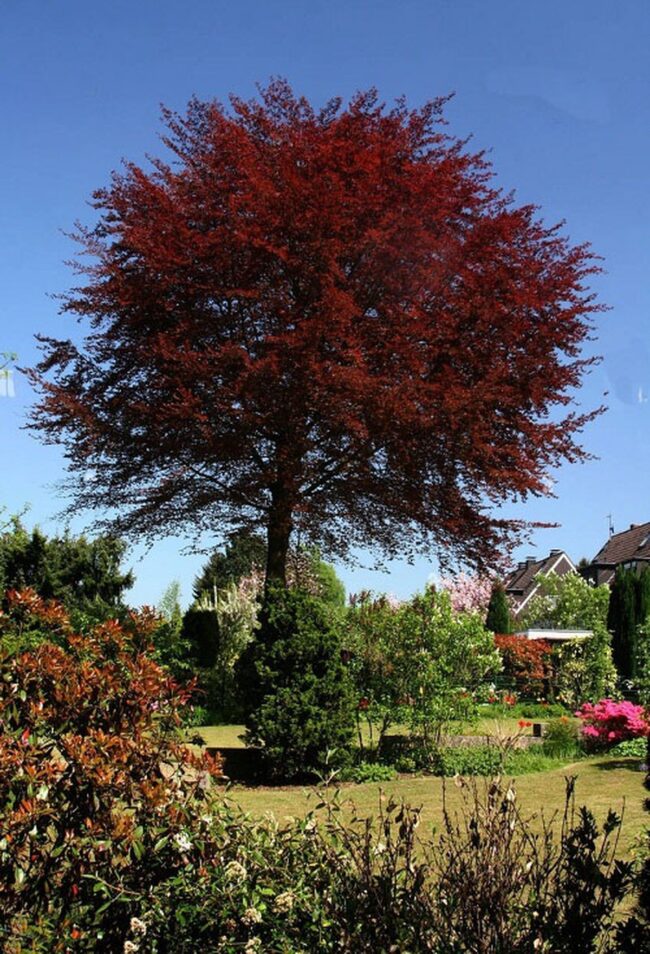 Copper beech trees revolutionize garden landscapes with their mesmerizing purple-copper foliage.