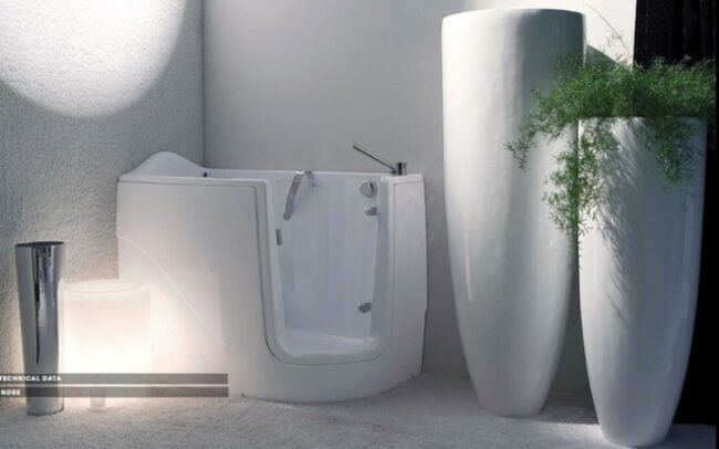Modern walk-in bathtubs with their clean white lines bring comfort and style to any home bathroom space.