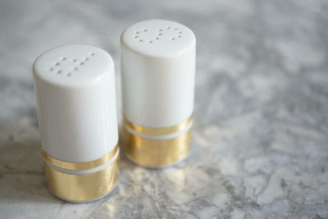Dark and light bands wrap around the shakers, creating visual interest against the wooden table.