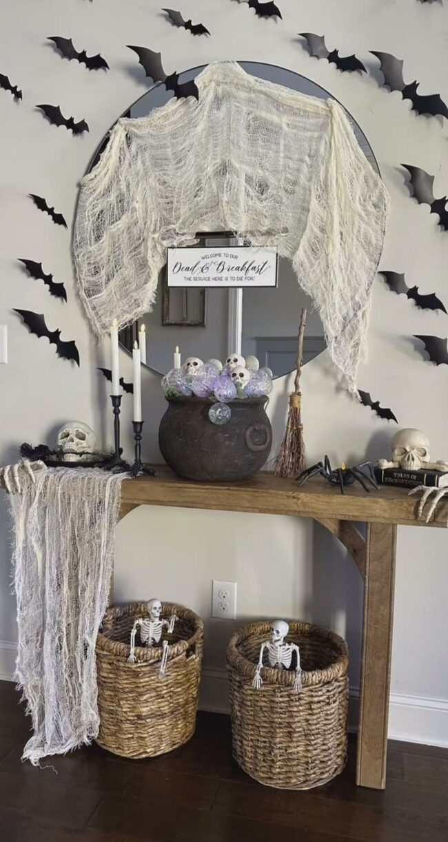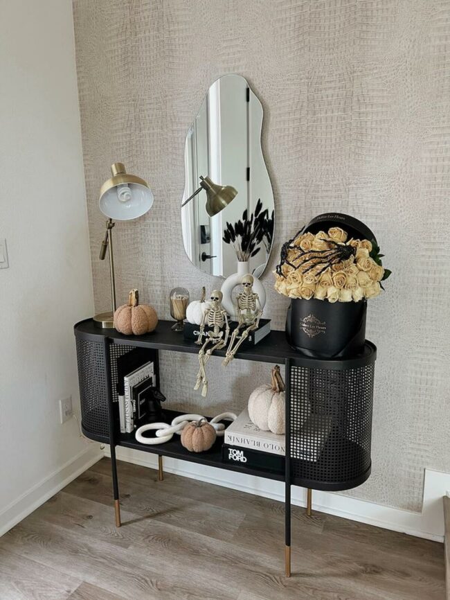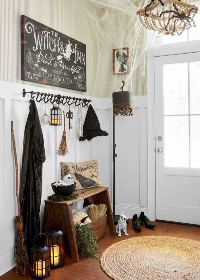 Every small detail matters when crafting the perfect Halloween welcome space.
