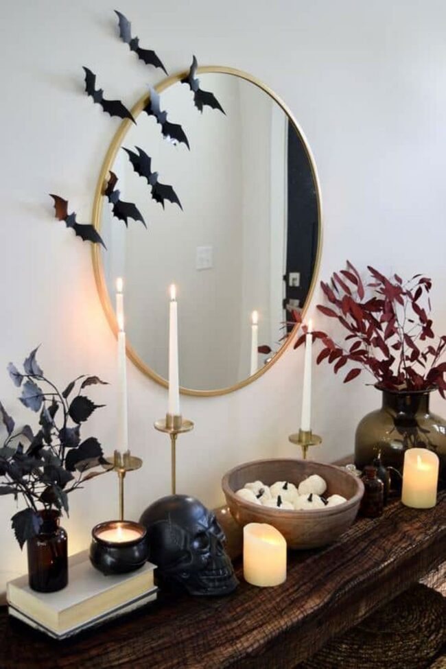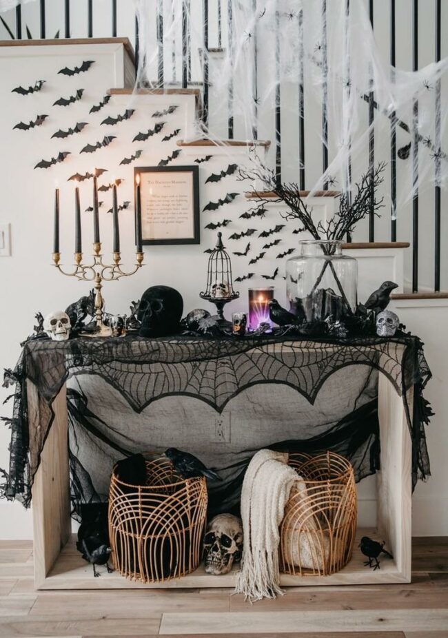 Strategic placement of decorative items builds a sense of spooky anticipation.
