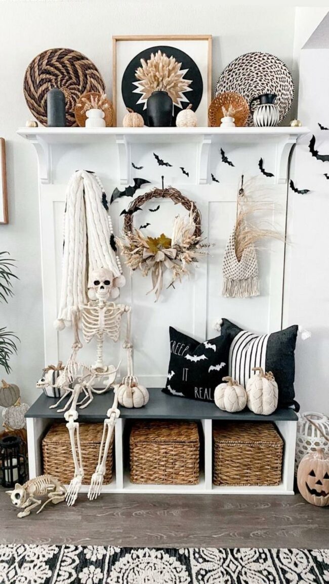 This room becomes a perfect autumn sanctuary that celebrates the spirit of Halloween with understated creativity.