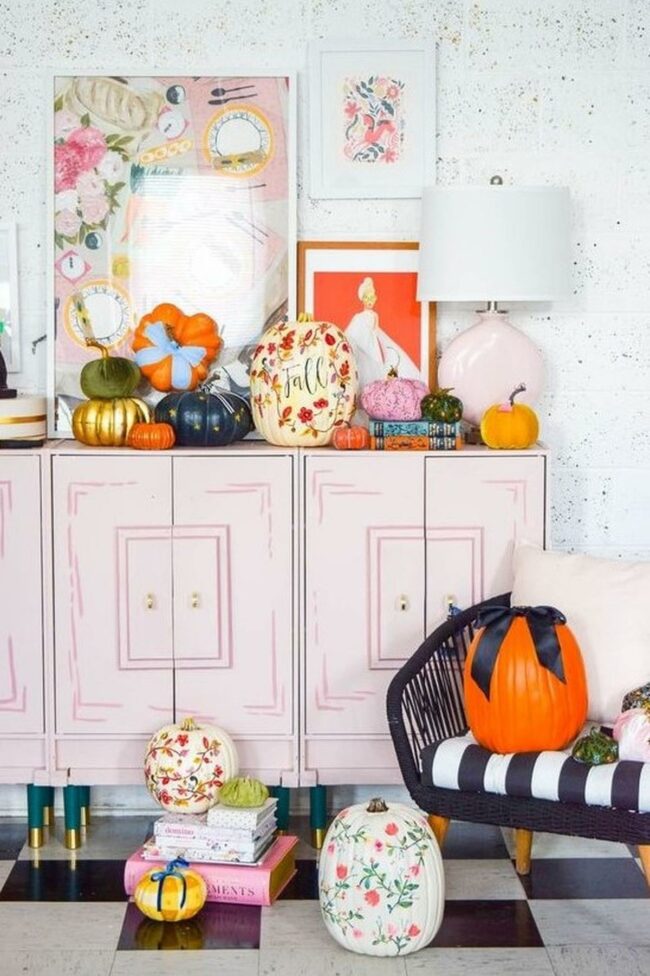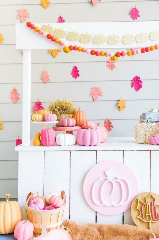 This sweet display breaks away from traditional orange-and-brown fall decor while still capturing the season's charm.