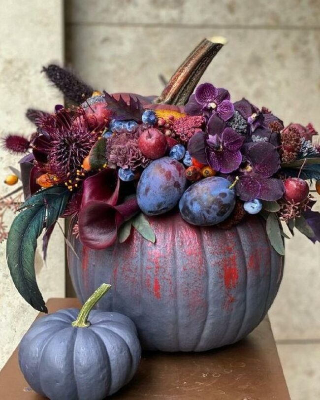 Fall decorating becomes more fun when you mix unexpected colors like these purples and pinks with classic autumn elements.