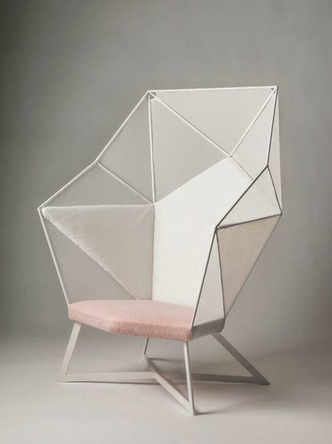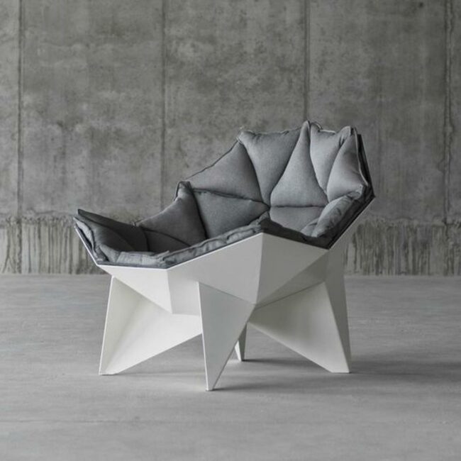 Stunning geometric angles define this eye-catching chair against a raw concrete backdrop.