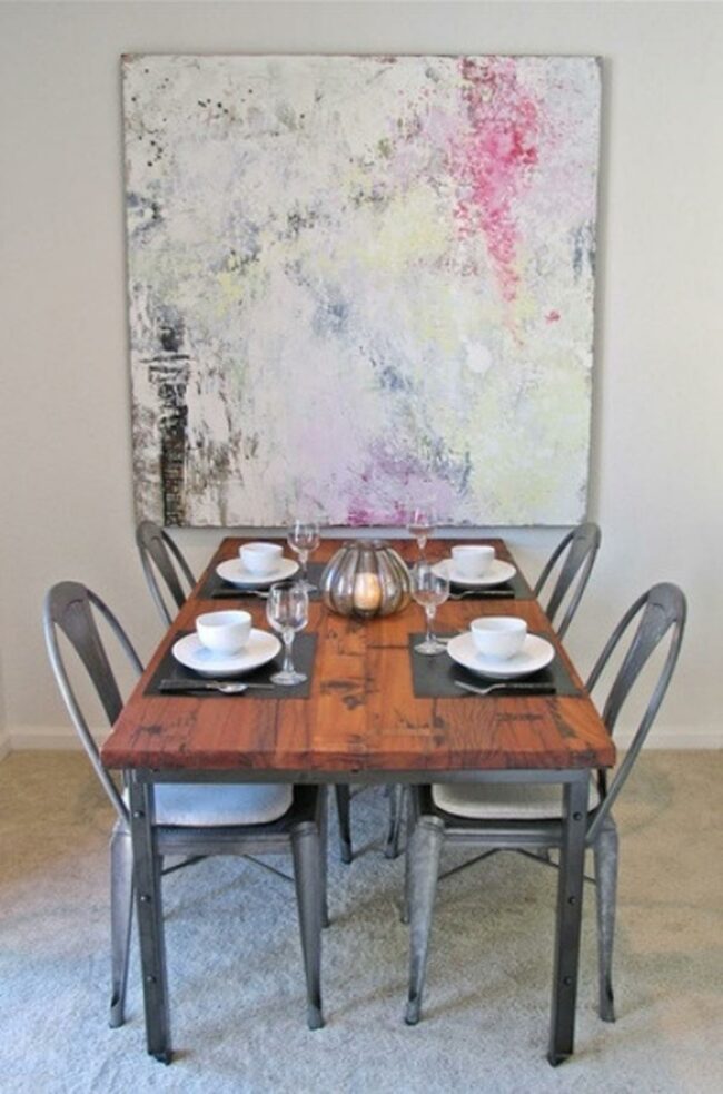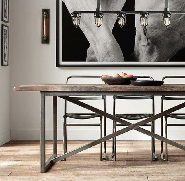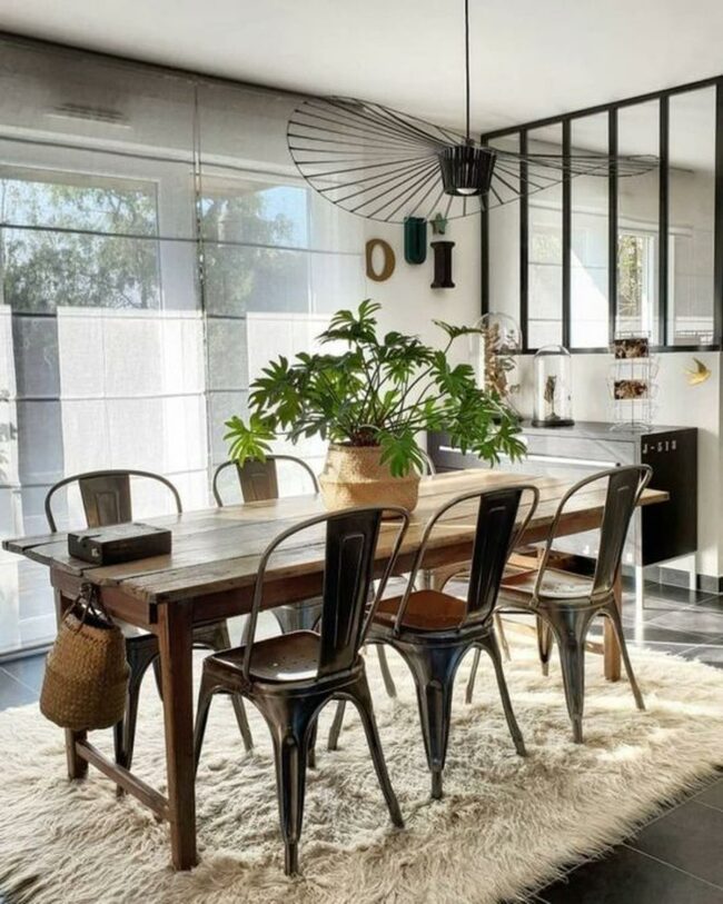 Metal and wood combine beautifully in this dining space, creating a balance of strength and warmth that draws everyone in.