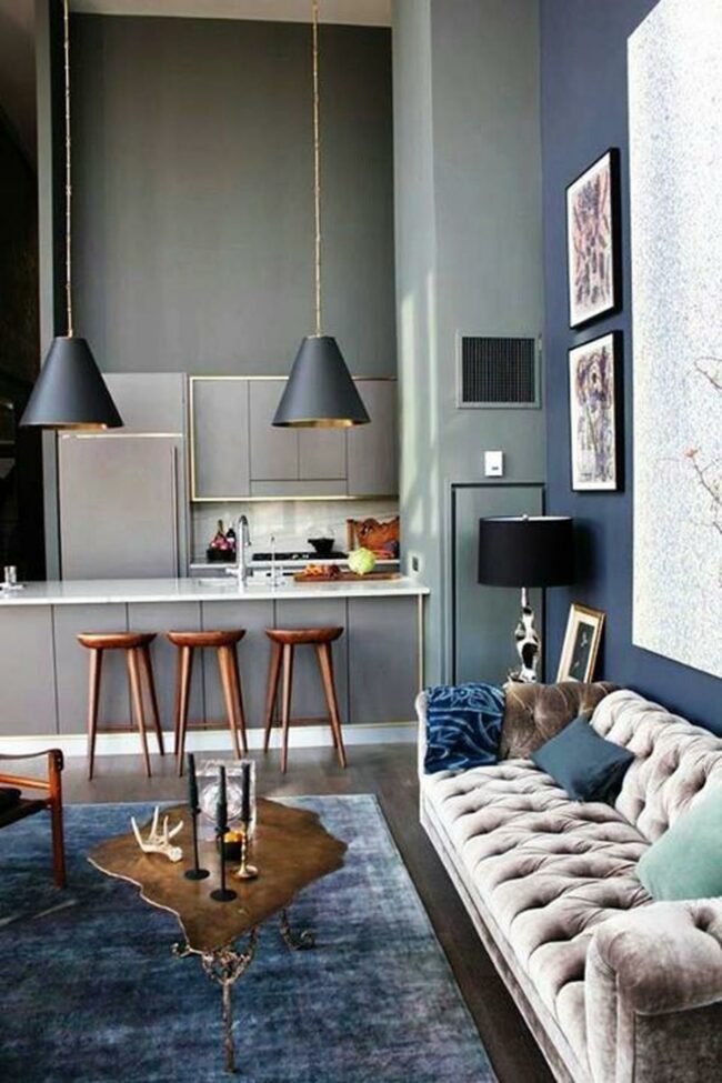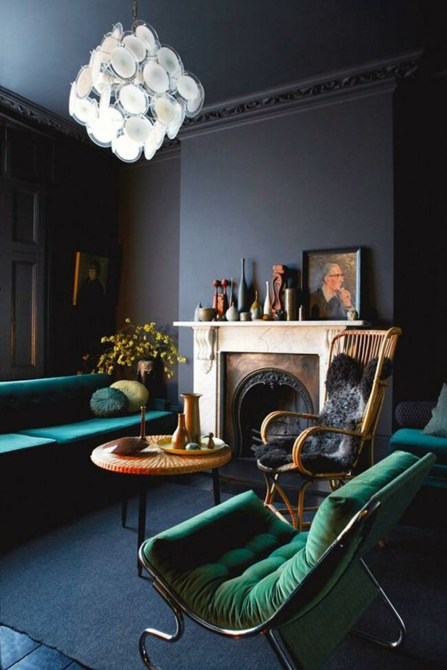 Dark color palettes paired with clean lines create spaces that feel simultaneously sophisticated and approachable.