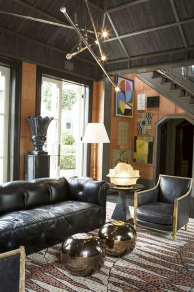 Balance between dark tones and lighter accents creates a perfect tension that keeps the eye moving around the room.