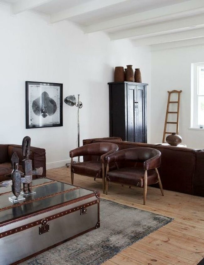 This style often features rich materials like leather, wood, and metal that exude strength without sacrificing comfort.