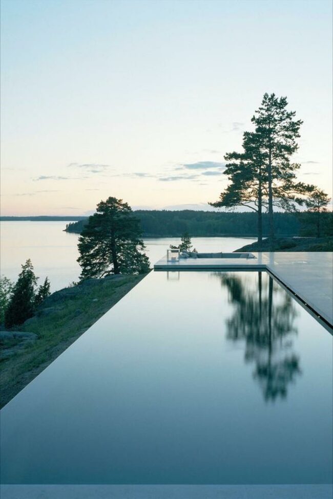 Soft horizon colors blend with the water, making the boundary between pool and landscape almost imperceptible.