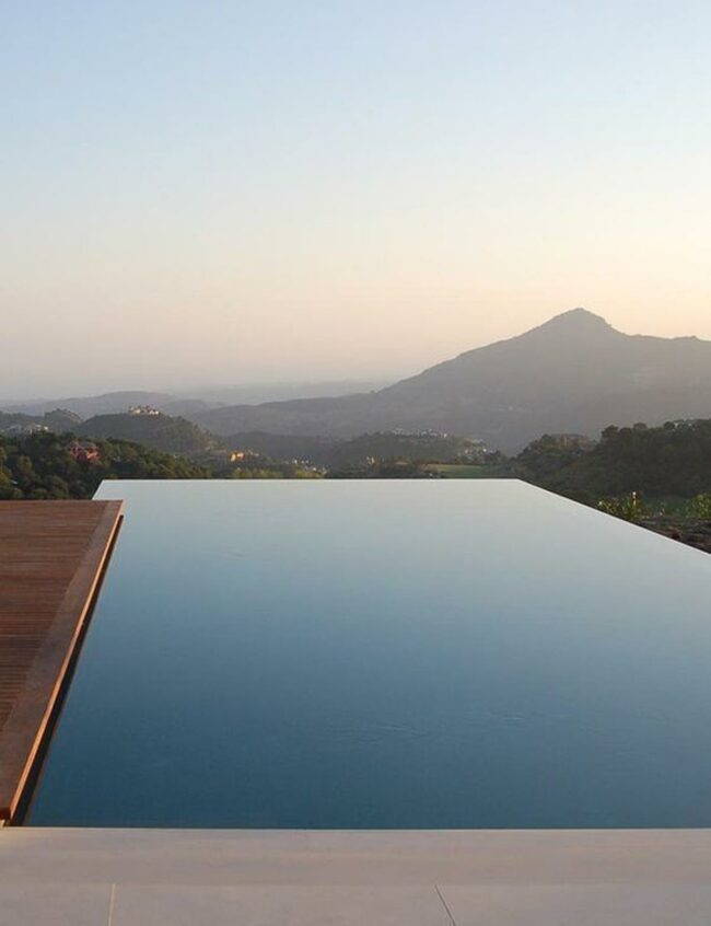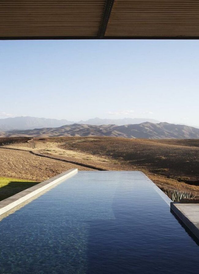Serene environments invite relaxation through stunning visual connections between swimming spaces and natural landscapes.
