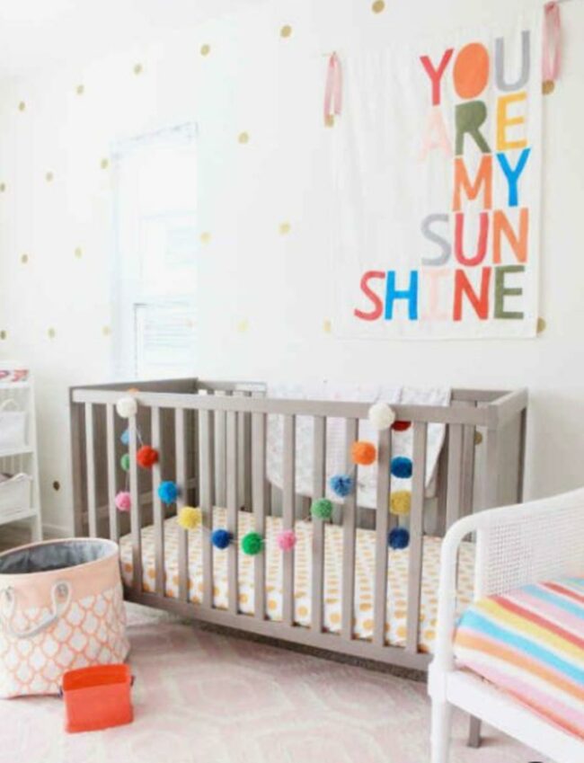 Little details like scattered patterns and thoughtful decorations make this nursery both functional and delightful for baby and parents alike.