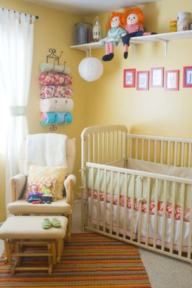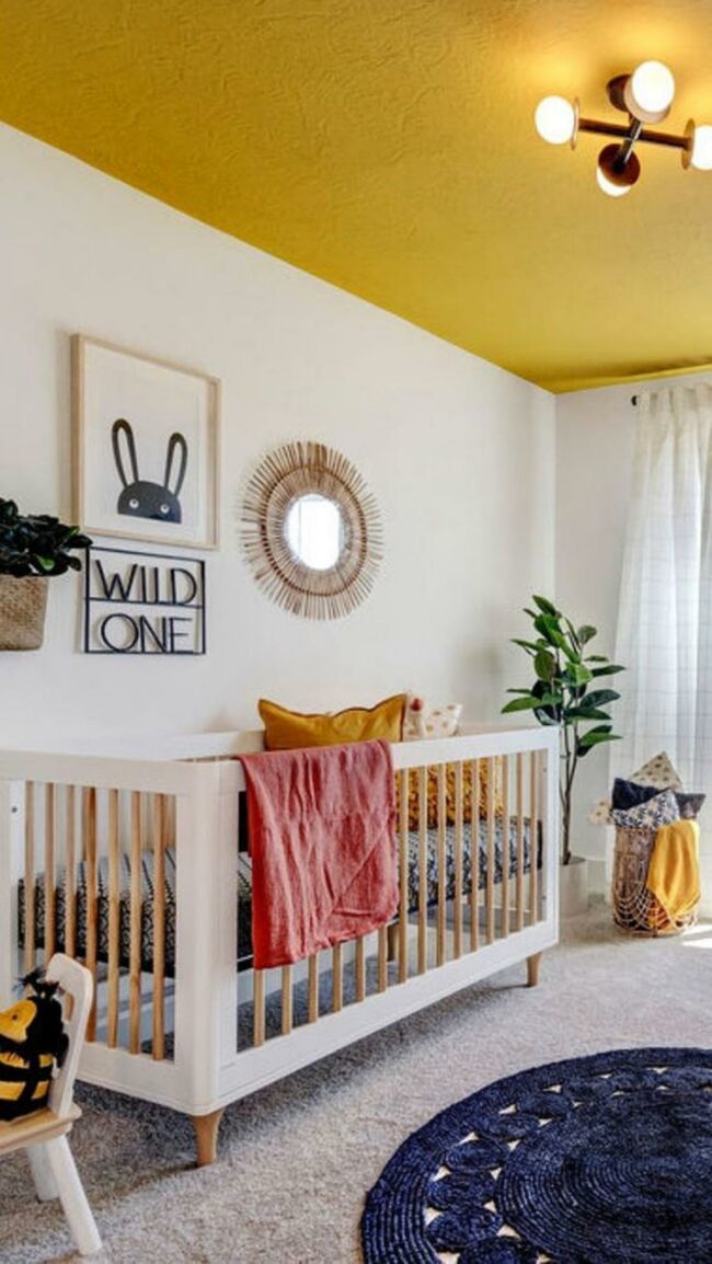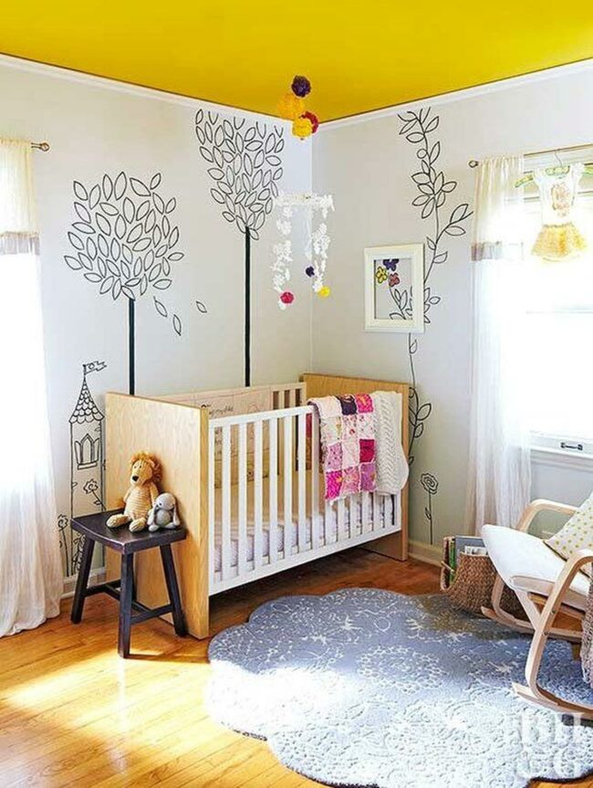 Yellow ceilings bring instant cheer to this happy nursery where your baby can grow and play.