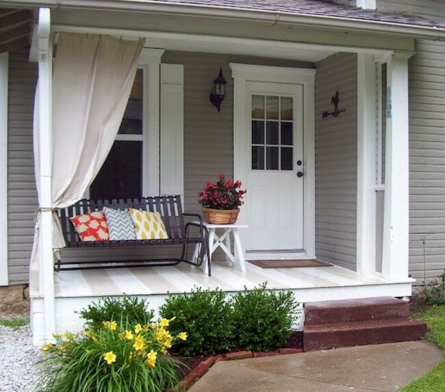 This inviting space perfectly balances simplicity and character, making it an ideal spot for relaxing or greeting neighbors.