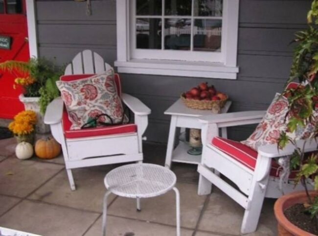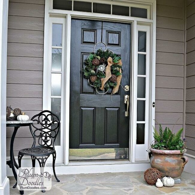 Orange and white pumpkins scattered around the entrance spark instant autumn cheer.