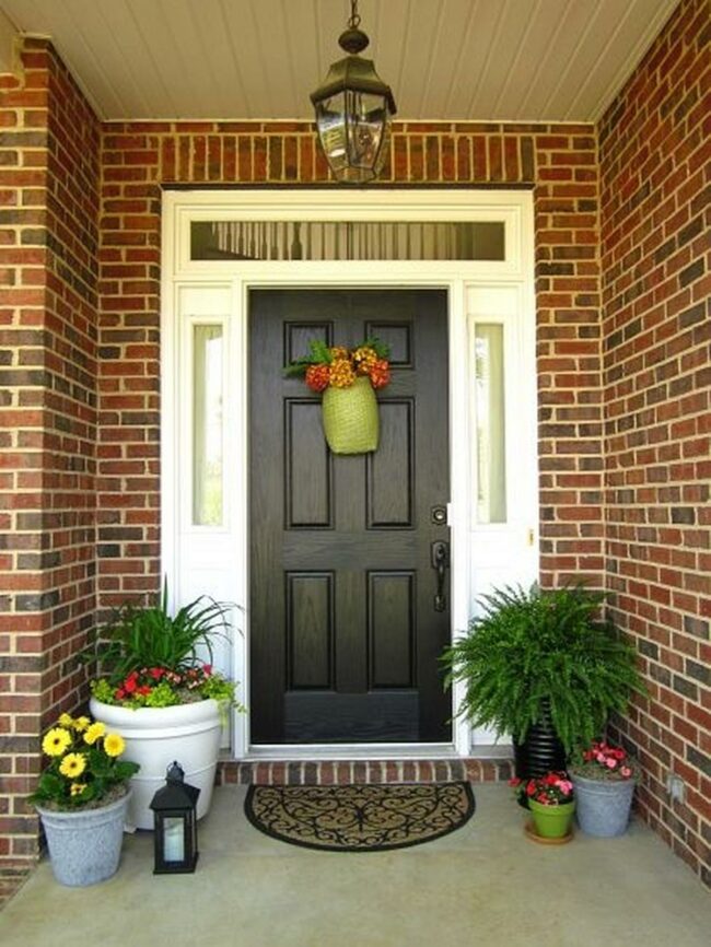 Dark doors make bold statements against classic red brick walls, instantly drawing you to the entrance.