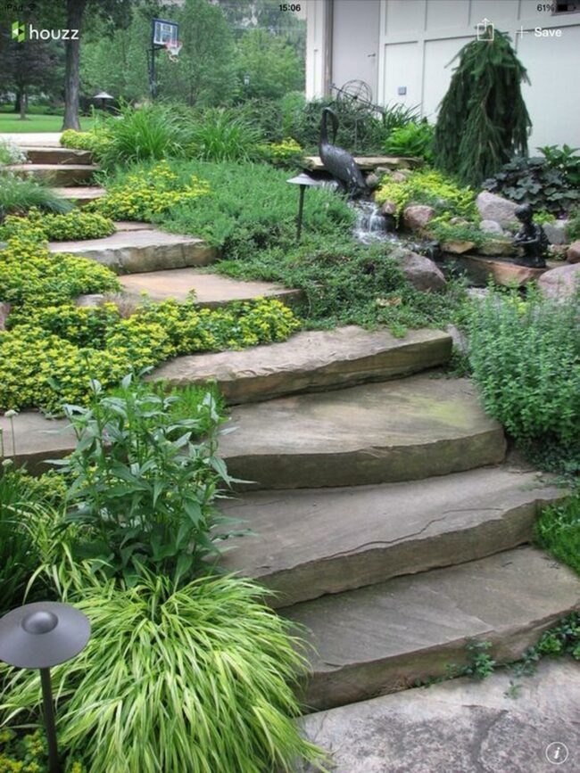Natural stone steps guide you gently upward through this peaceful outdoor sanctuary.