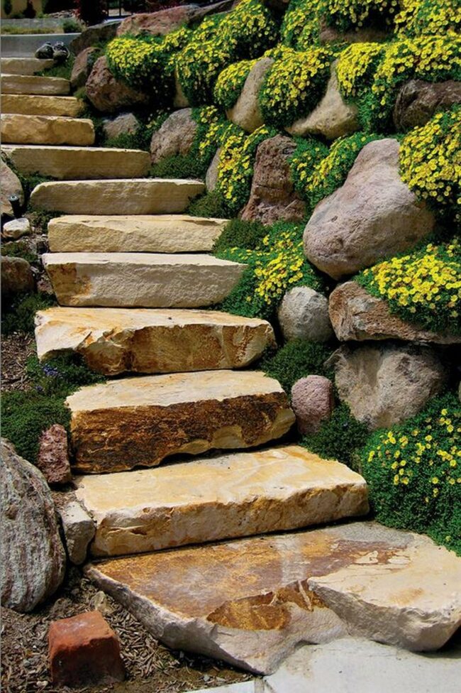 Smooth rocks line the edges, anchoring the steps into the landscape.