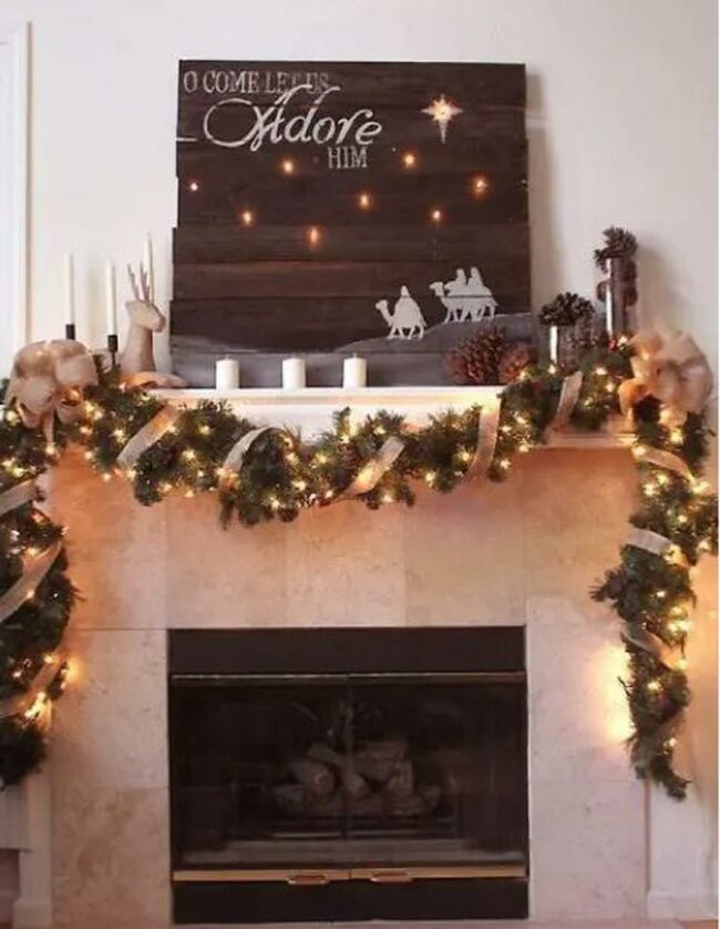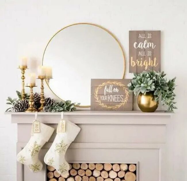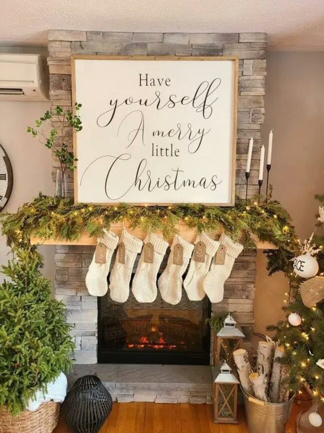 Holiday fireplace spaces spark warmth and joy with natural charm.