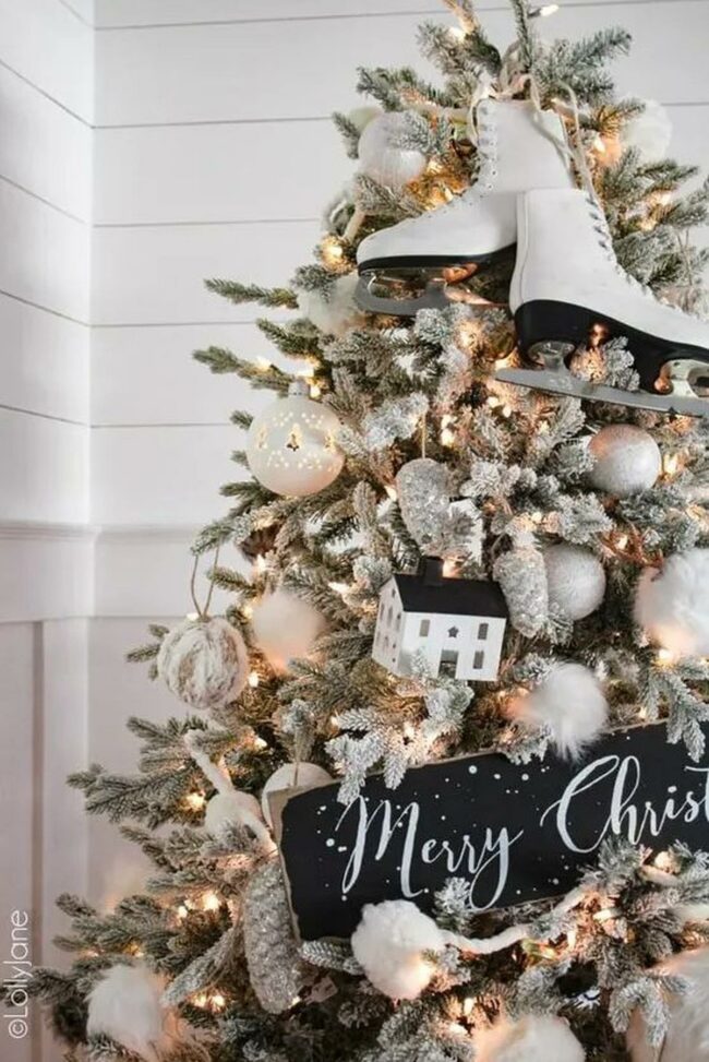 Christmas decor is a stunning monochromatic celebration blending classic holiday spirit with modern design sensibilities.