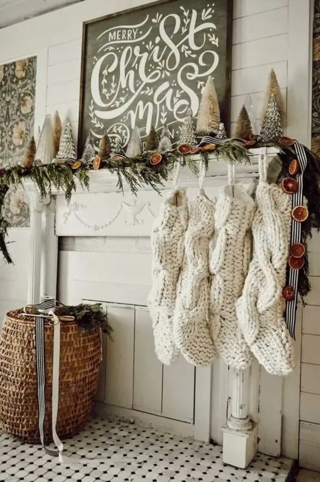 Creamy stockings hang delicately, promising magical surprises for loved ones.