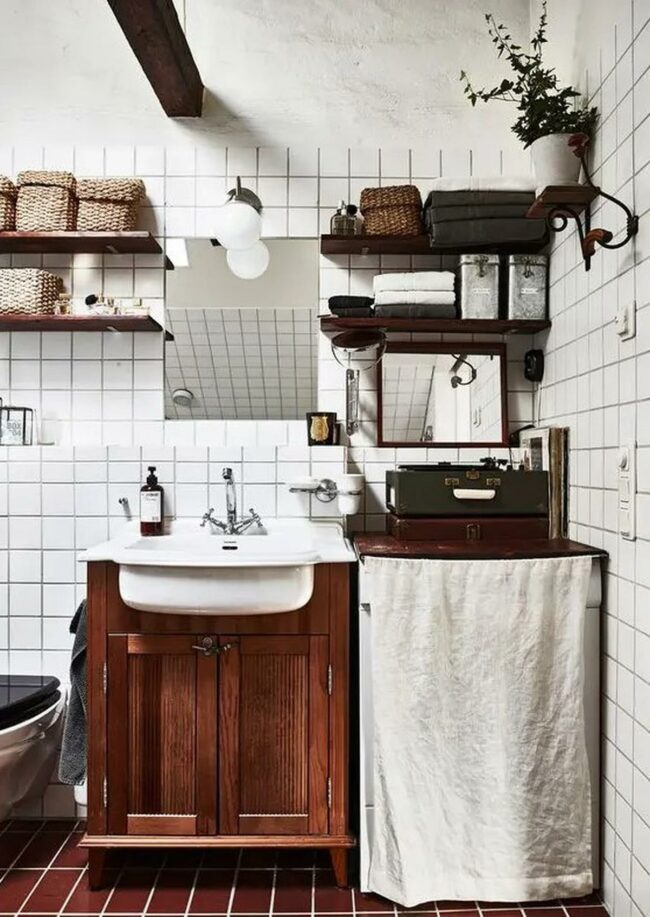 The balance between practicality and beauty remains a hallmark that sets these bathrooms apart from other styles.