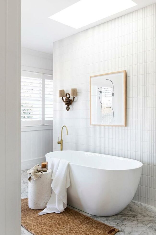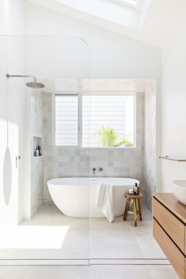 White-tiled bathrooms are a sanctuary of refreshing simplicity that instantly lifts your mood.