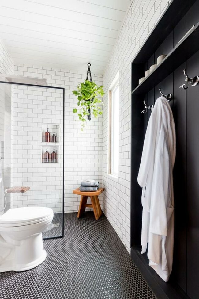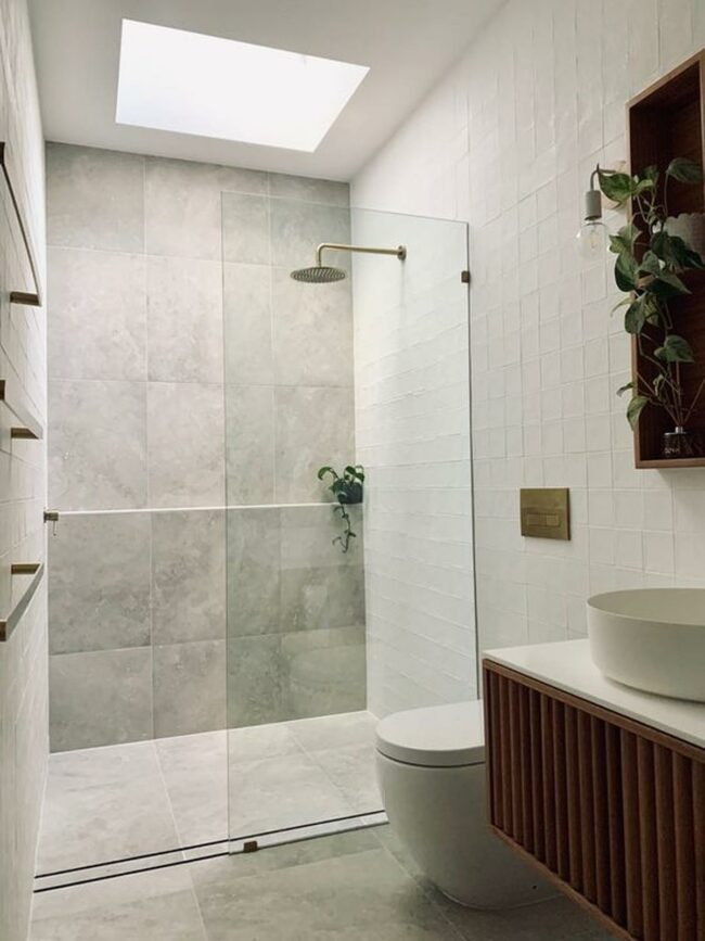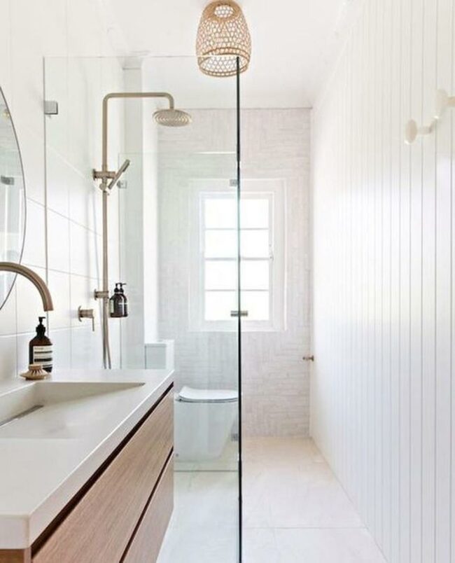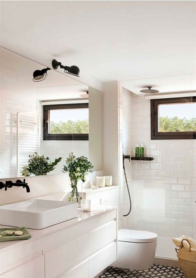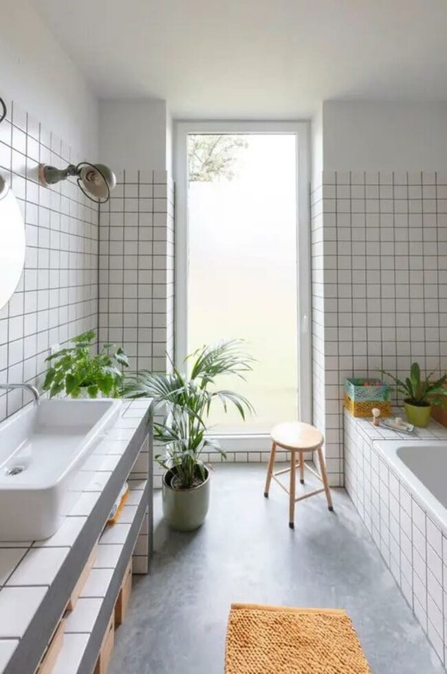 Bathrooms with white tiles shine with natural elegance and clean design.
