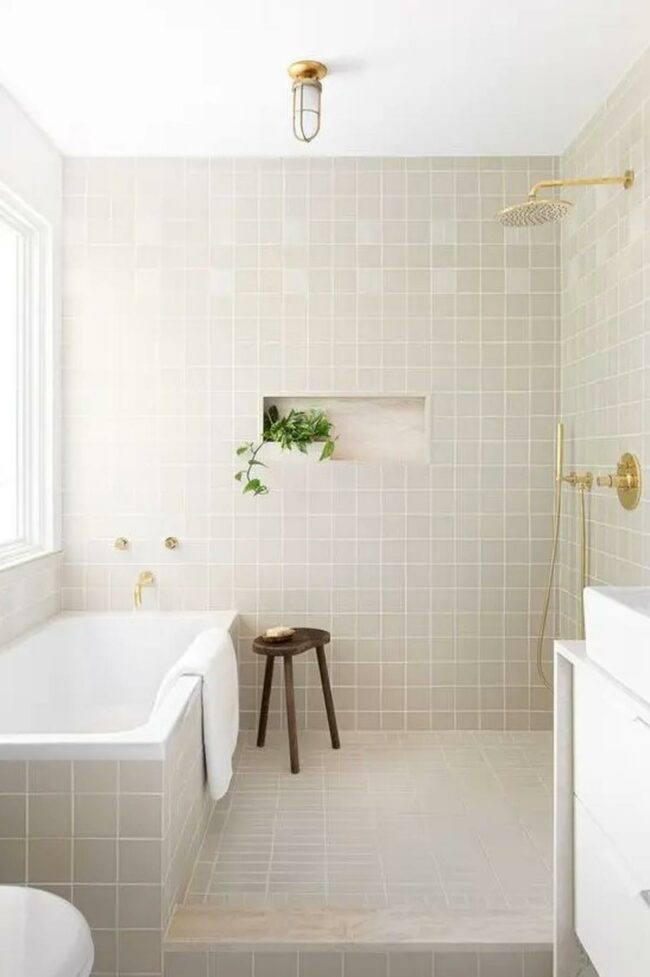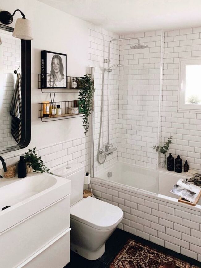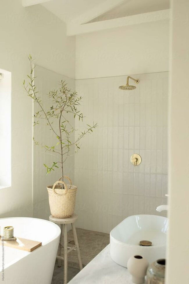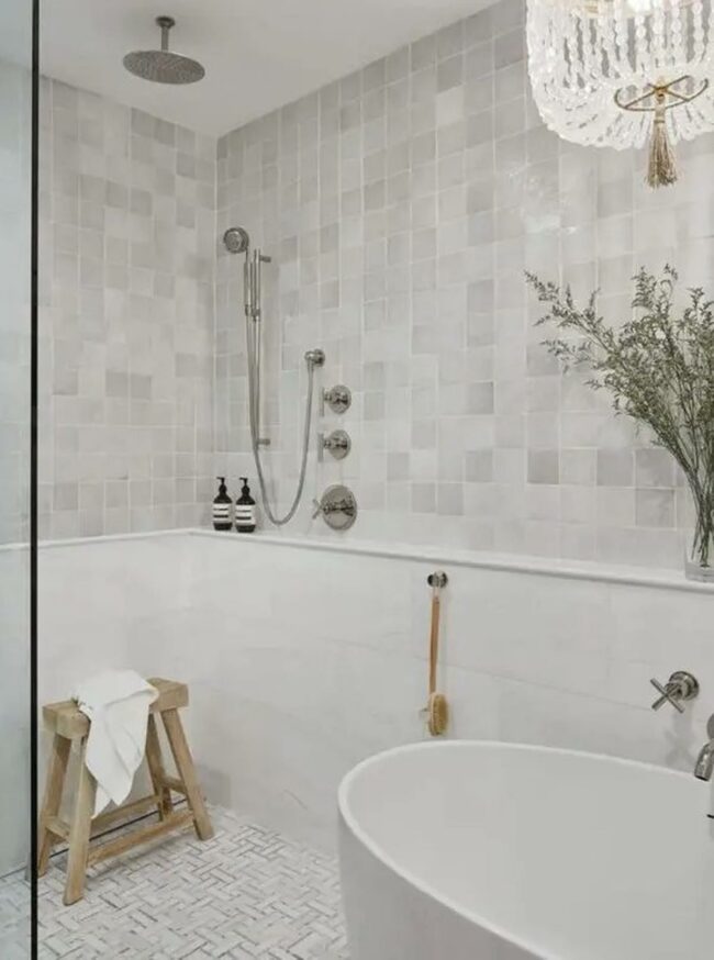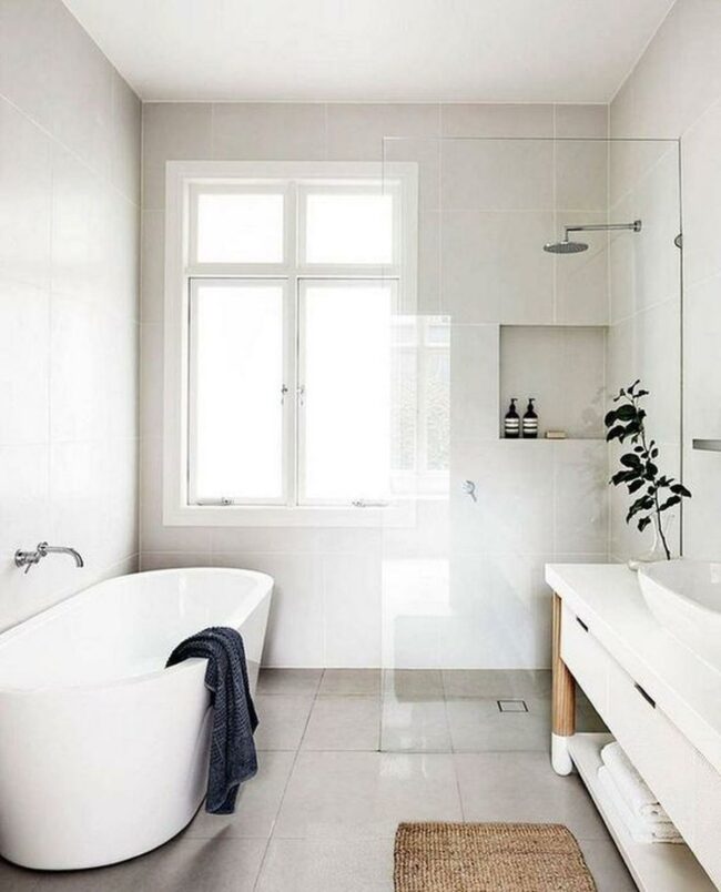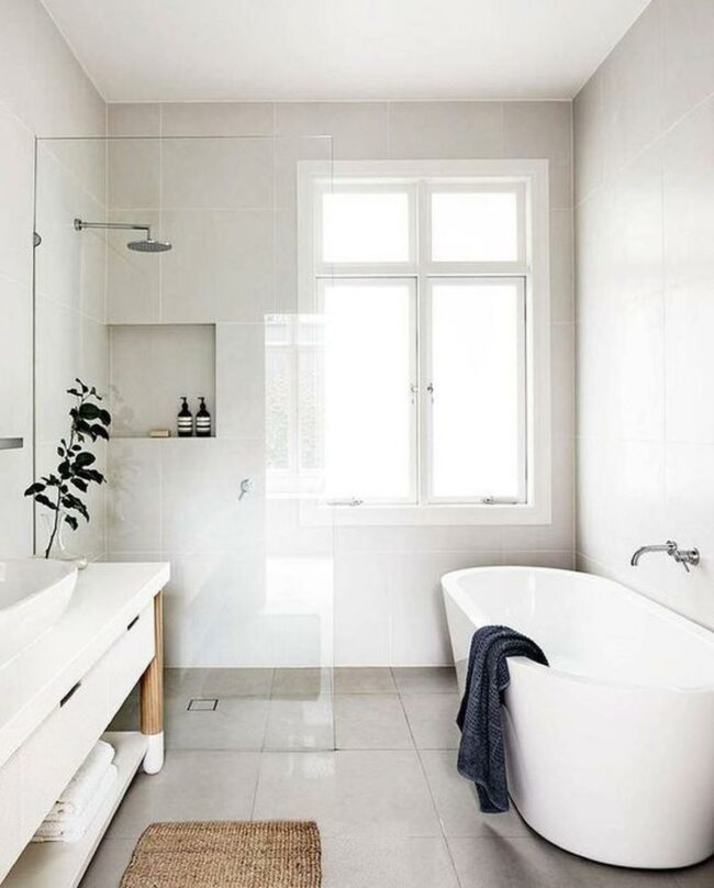 White-tiled bathrooms are minimalist sanctuaries that blend modern design with natural comfort.