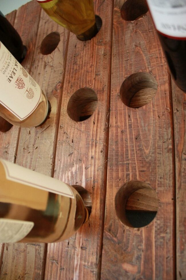 Wine enthusiasts would adore this rustic wooden rack with its carefully crafted round holes perfectly designed to cradle bottles.