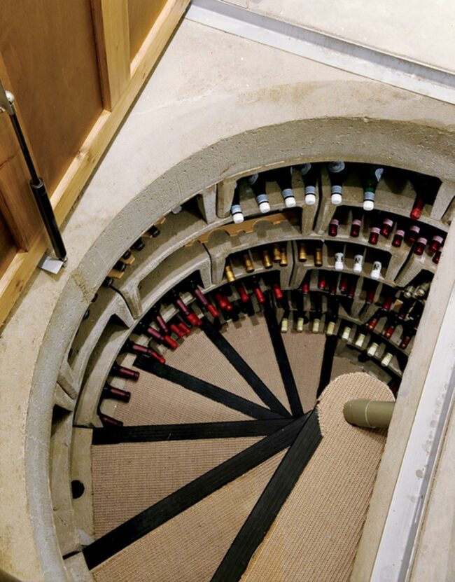 Hidden wine cellars spark excitement with spiral staircases leading to stunning collections.